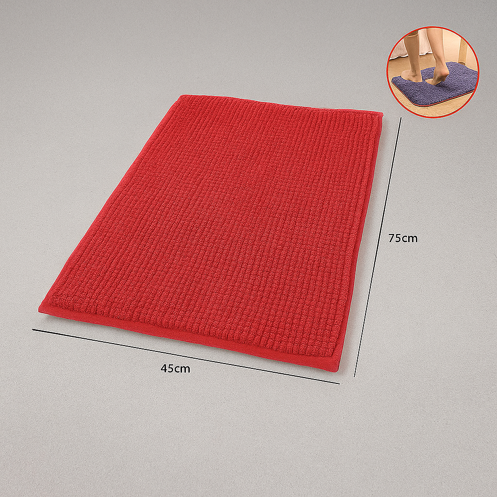 Il tappeto bagno rosso in morbida chenille è perfetto per garantire comfort e sicurezza dopo la doccia o il bagno. Assorbente e antiscivolo, dona un tocco di colore e praticità al tuo bagno.