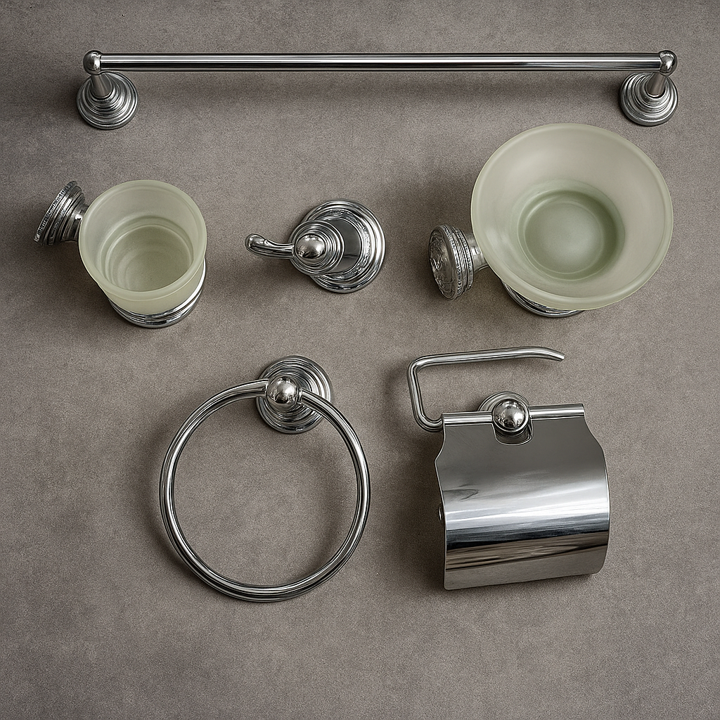 kit bagno 6 pezzi cromato modello 609