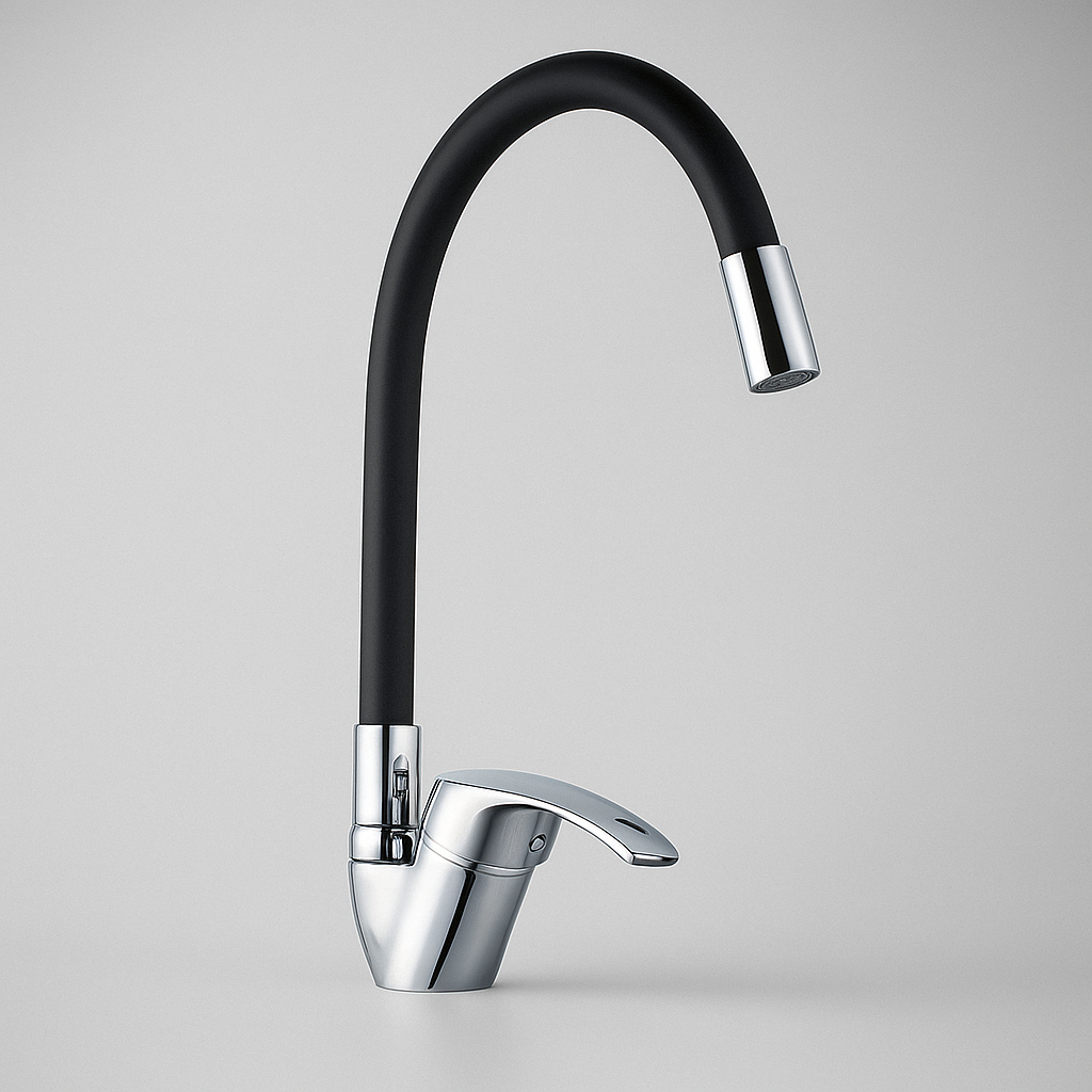 Il miscelatore per cucina con tubo flessibile nero unisce praticità e design moderno, ideale per una cucina funzionale ed elegante. La canna flessibile in silicone nero consente di orientare il getto d’acqua in ogni direzione, rendendo più semplici le operazioni quotidiane. La finitura cromata conferisce robustezza e un aspetto raffinato, mentre la testa a due fasi garantisce un controllo preciso del flusso d’acqua. L’aeratore anticalcare assicura lunga durata e minore manutenzione, favorendo anche il risparmio idrico.