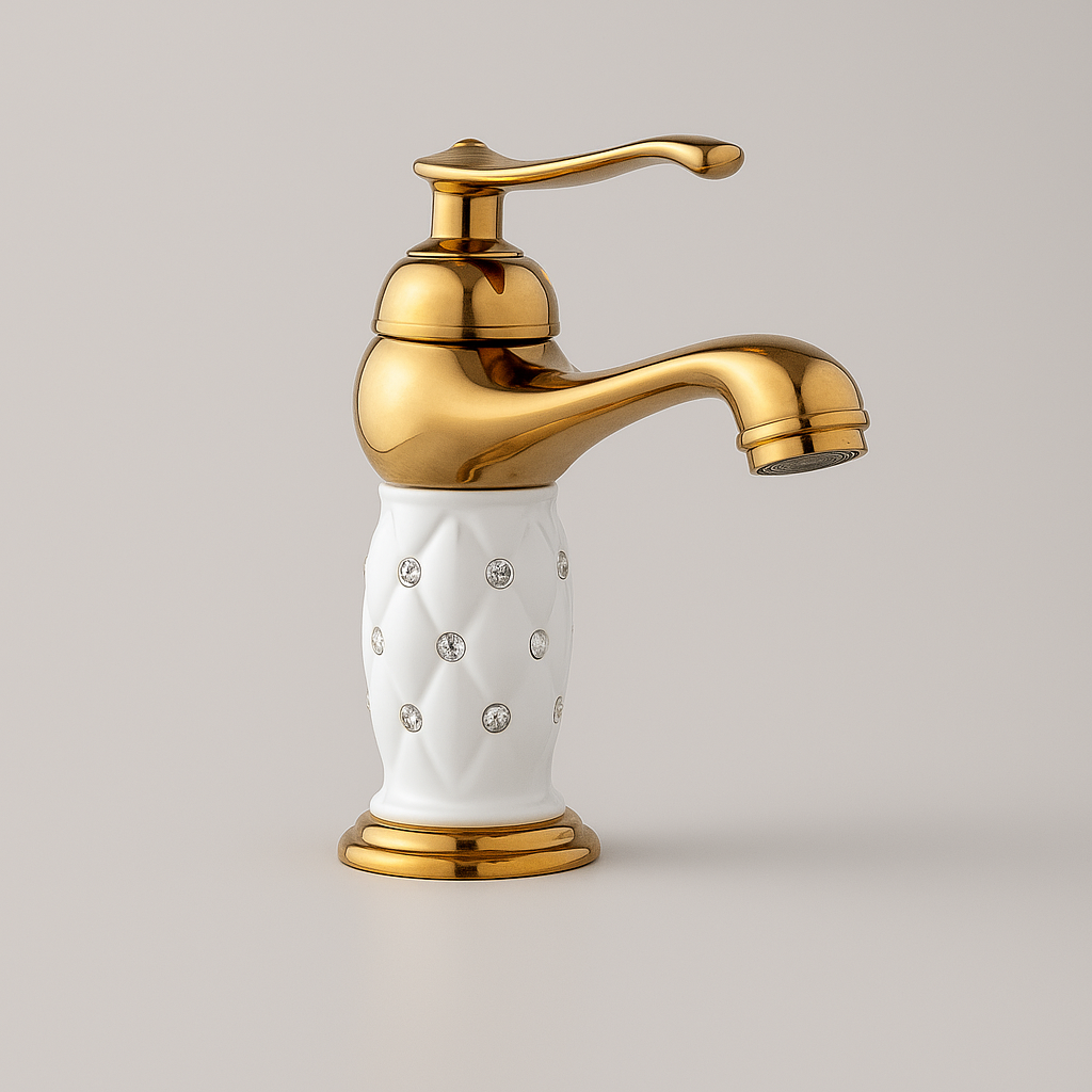 Il miscelatore per lavabo Diamante è un modello elegante e raffinato, perfetto per arredare il bagno con un tocco di lusso. La finitura in oro con corpo decorato effetto ceramica impreziosito da dettagli brillanti rende questo miscelatore unico nel suo genere. È dotato di testa a due fasi per un controllo preciso del flusso d’acqua e di un miscelatore girevole che ne aumenta la praticità. L’aeratore anticalcare garantisce durata nel tempo e manutenzione ridotta, mentre il sistema integrato favorisce il risparmio idrico.