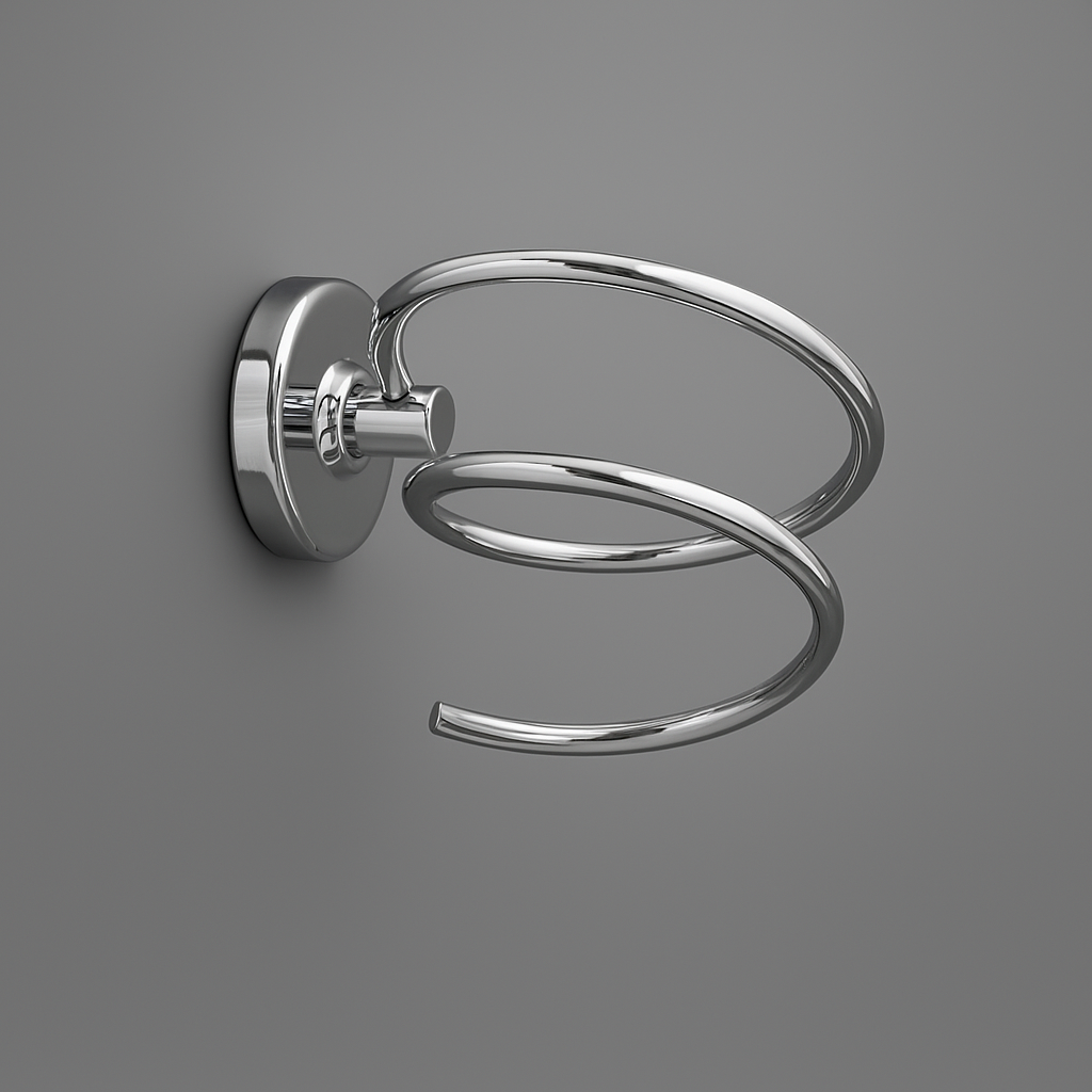 Il porta phon da parete modello 190 è la soluzione ideale per organizzare il bagno con stile e praticità. Realizzato in ottone cromato lucido, offre resistenza all’umidità e una lunga durata nel tempo. Il design a spirale consente di inserire facilmente l’asciugacapelli, mantenendolo stabile e sicuro anche dopo l’utilizzo. Il montaggio a parete permette di risparmiare spazio e conferisce un tocco elegante all’ambiente bagno.