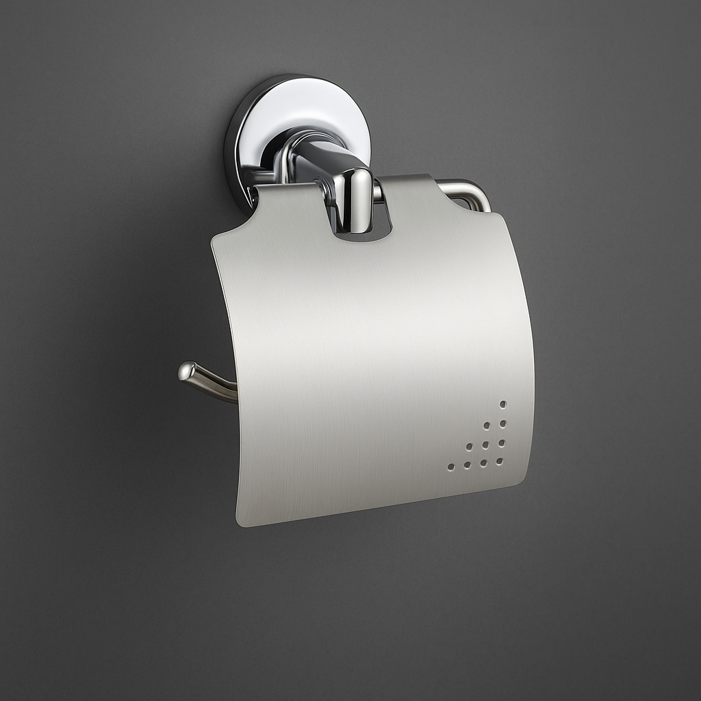 Il porta rotolo con coperchio modello 190 combina eleganza e funzionalità in un design moderno e raffinato. Realizzato in ottone cromato lucido, resiste perfettamente all’umidità e all’usura quotidiana. Il pratico coperchio mobile protegge il rotolo da schizzi d’acqua e polvere, mantenendo il bagno sempre pulito e ordinato.