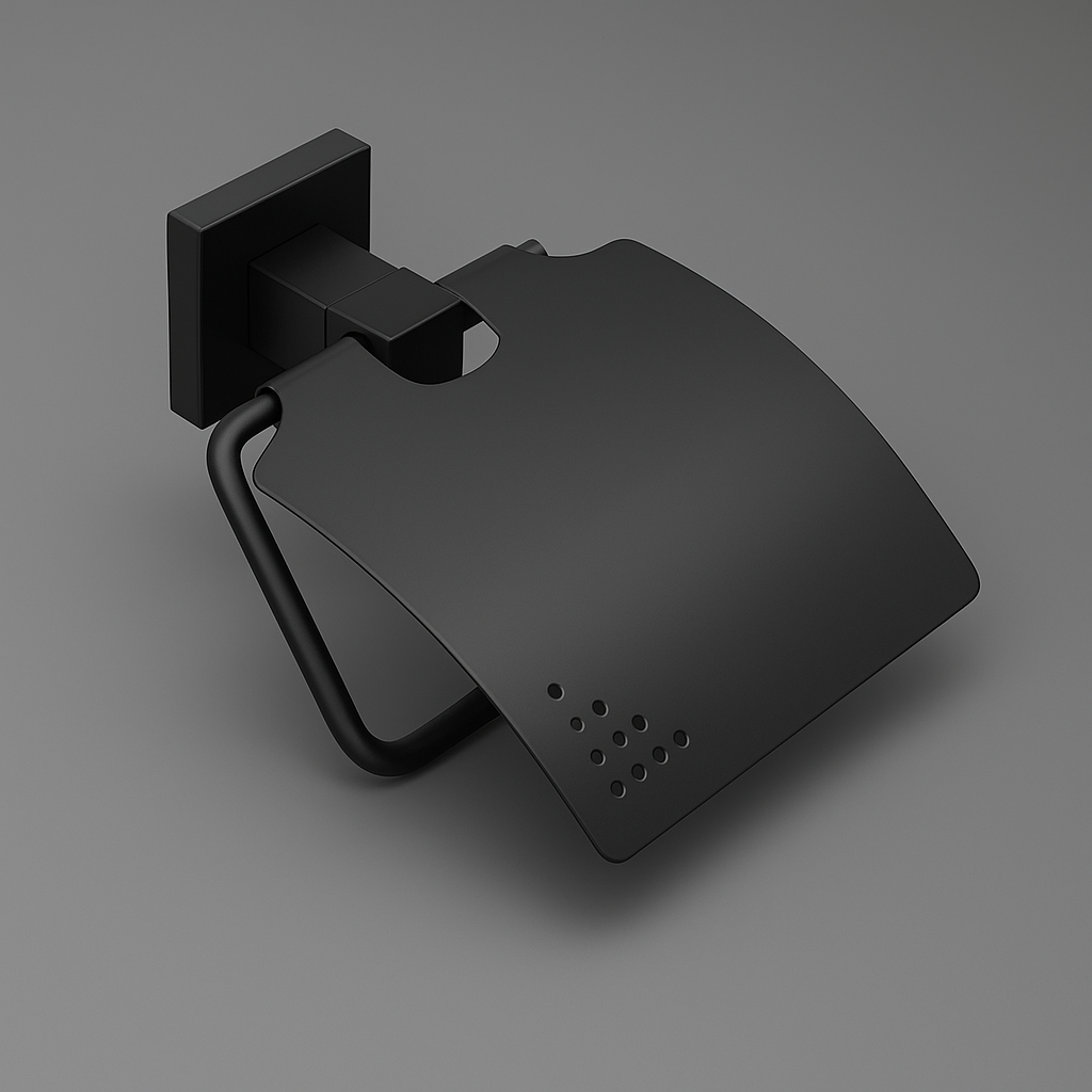 Porta rotolo da parete in metallo con elegante finitura nera opaca e coperchio protettivo. Pensato per mantenere in ordine la carta igienica proteggendola dagli schizzi d’acqua, unisce praticità e stile contemporaneo. Installazione semplice e sicura con doppio sistema di fissaggio: biadesivo 3M incluso o viti e tasselli.