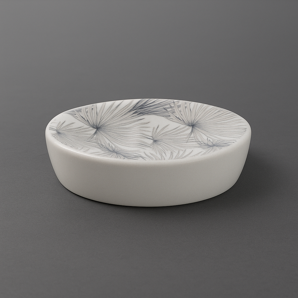 Il porta sapone in ceramica è un accessorio elegante e funzionale, perfetto per il bagno. Il suo design moderno, arricchito dal decoro foglie, unisce praticità e stile, rendendolo ideale per mantenere il sapone sempre ordinato e asciutto.