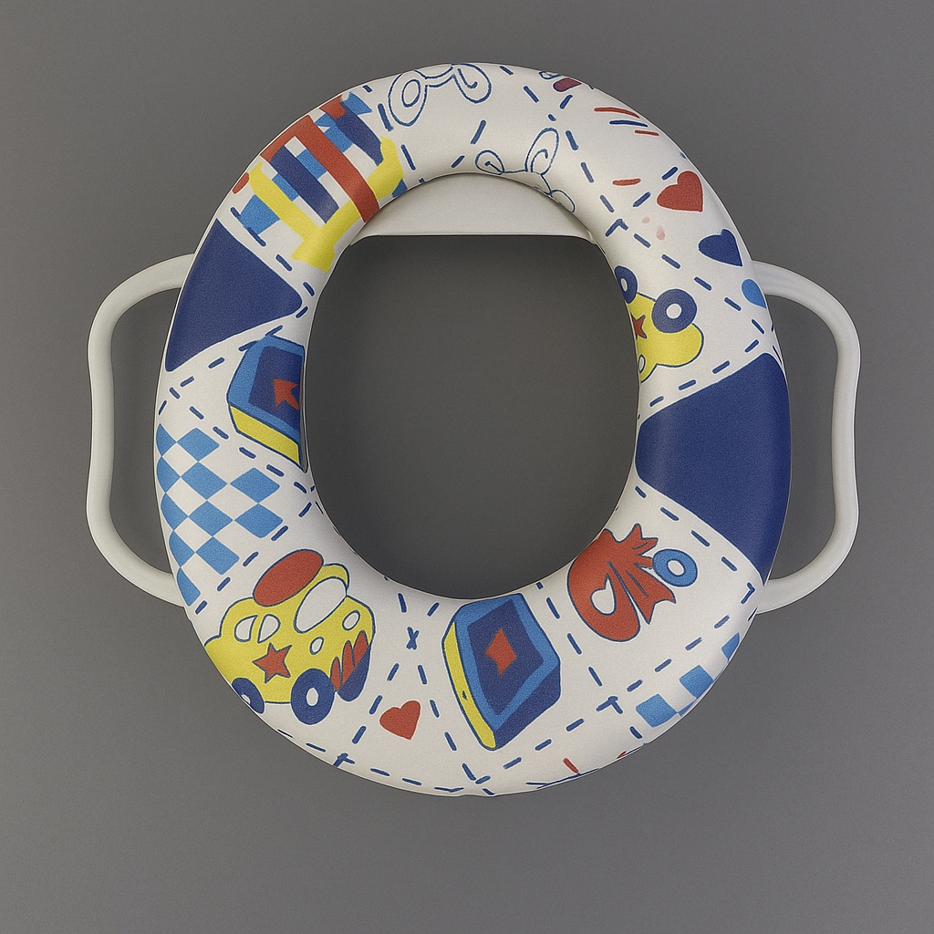 Riduttore WC universale per bambini, con pratiche maniglie laterali per una maggiore sicurezza e stabilità. Decorato con simpatici disegni colorati, aiuta i più piccoli a sentirsi a loro agio durante l’uso del bagno. Realizzato con materiali resistenti e facili da pulire.
