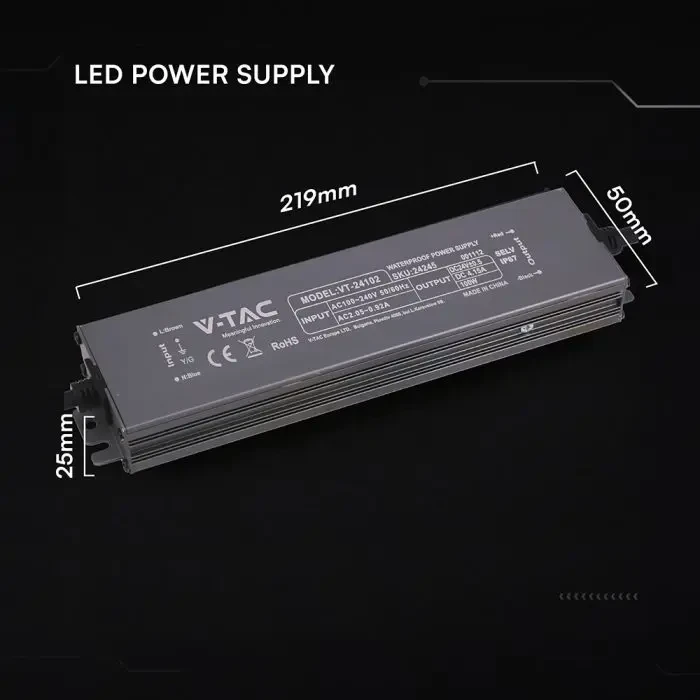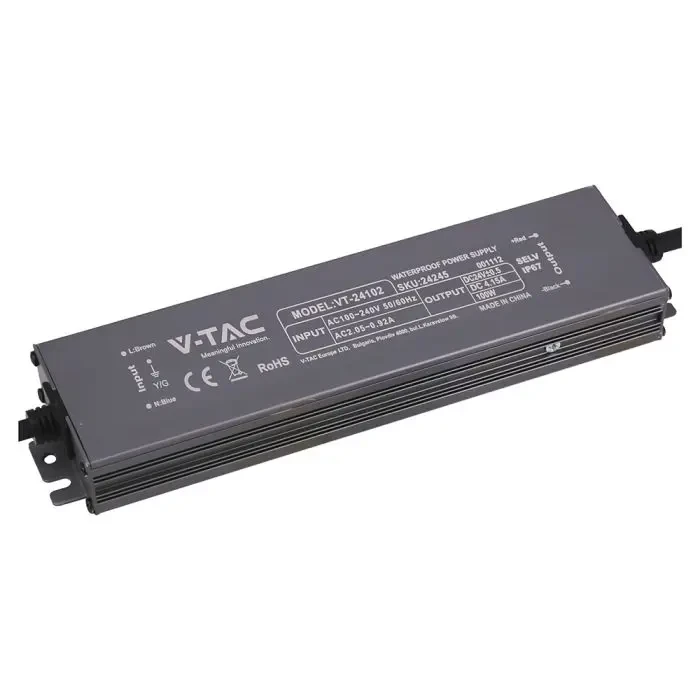 alimentatore led in metallo 100w 24v 4.15a con 1 uscita 219x50x25mm ip67