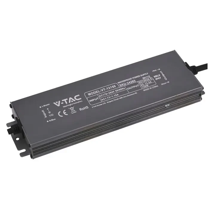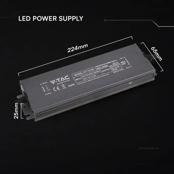 alimentatore led in metallo 150w 12v 12.5a con 1 uscita 224x65x25 mm ip67