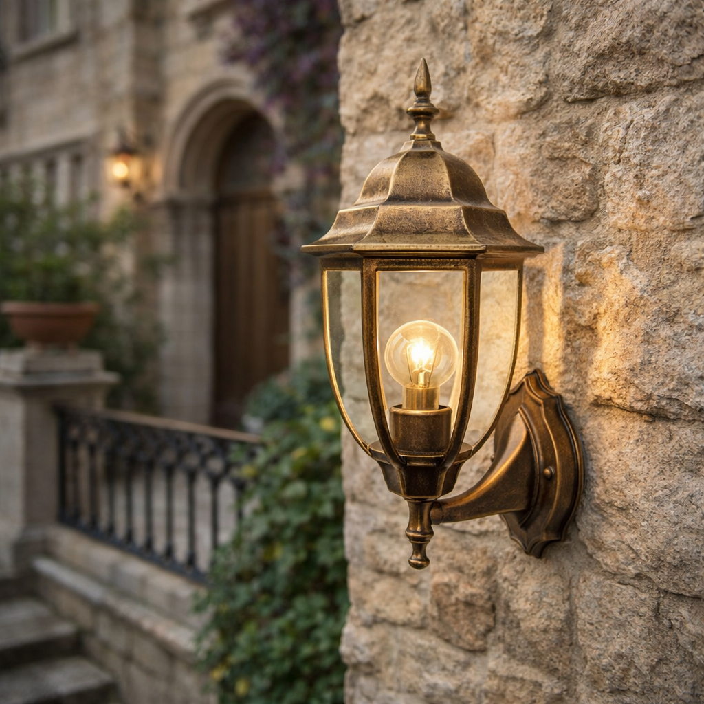 La lanterna da muro ES09-C con attacco E27 è una lampada da esterno dallo stile classico ed elegante, perfetta per valorizzare facciate, ingressi, terrazzi, balconi e porticati. La finitura bronzo dona un tocco tradizionale e raffinato agli ambienti esterni.