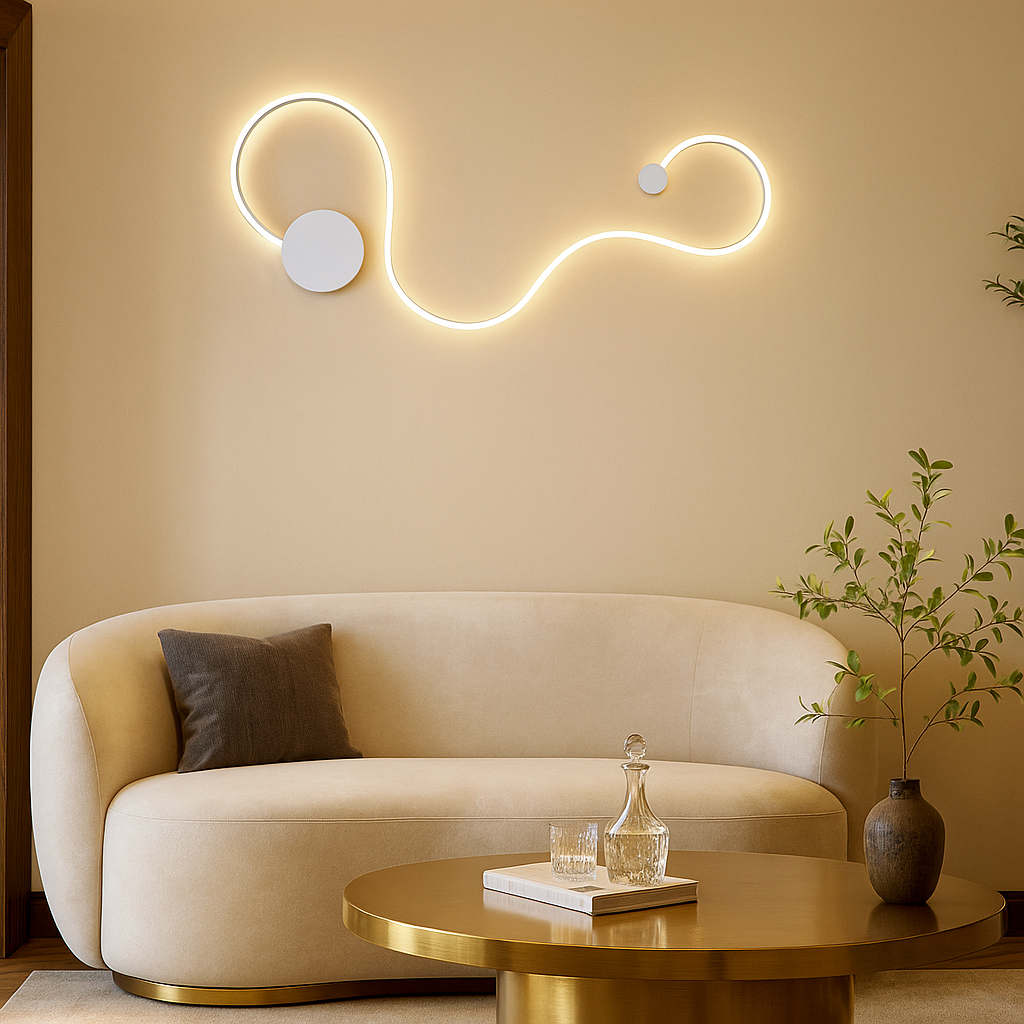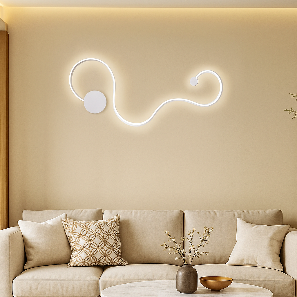 l’applique da muro E12-3C è una lampada LED artistica che combina eleganza e funzionalità. grazie al suo design sinuoso e alla luce regolabile (3000K, 4000K, 6500K), crea un effetto scenografico unico e raffinato. perfetta per valorizzare pareti e ambienti moderni, offre una soluzione di illuminazione efficiente, estetica e duratura.