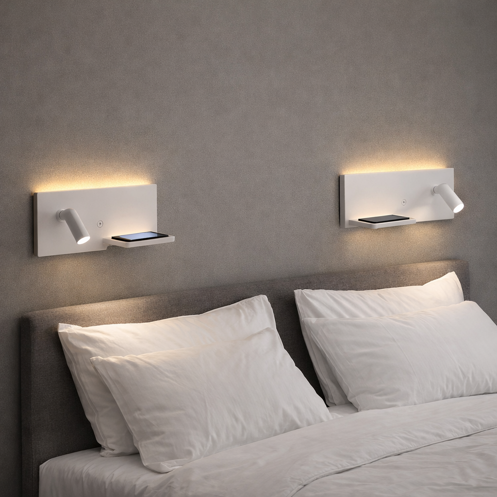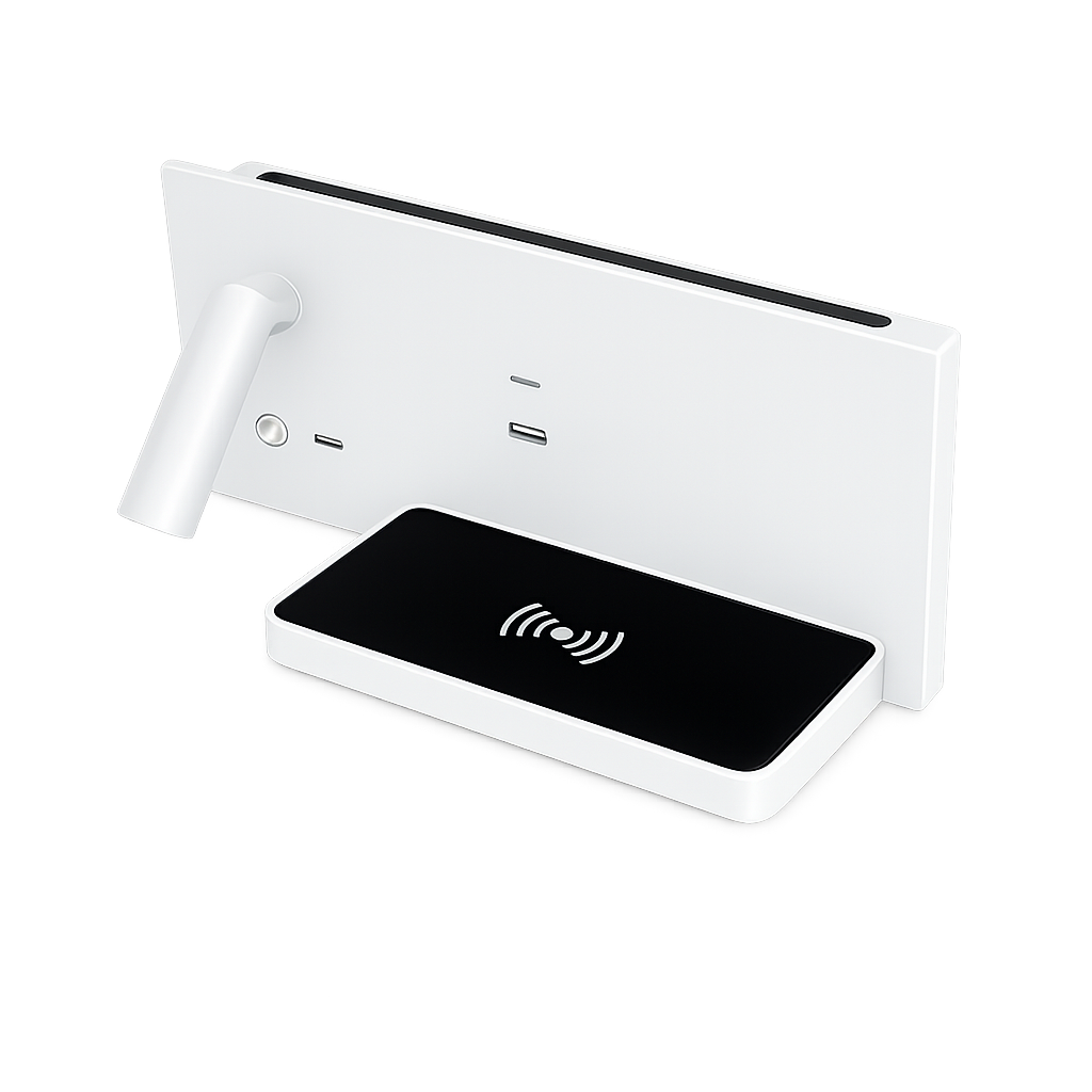 L’applique LED multifunzione FD-26 è una soluzione moderna e pratica per l’illuminazione da parete, ideale per camera da letto, hotel, B&B e ambienti contract. Dotata di luce LED integrata e base d’appoggio con ricarica wireless, unisce design e funzionalità in un unico prodotto.