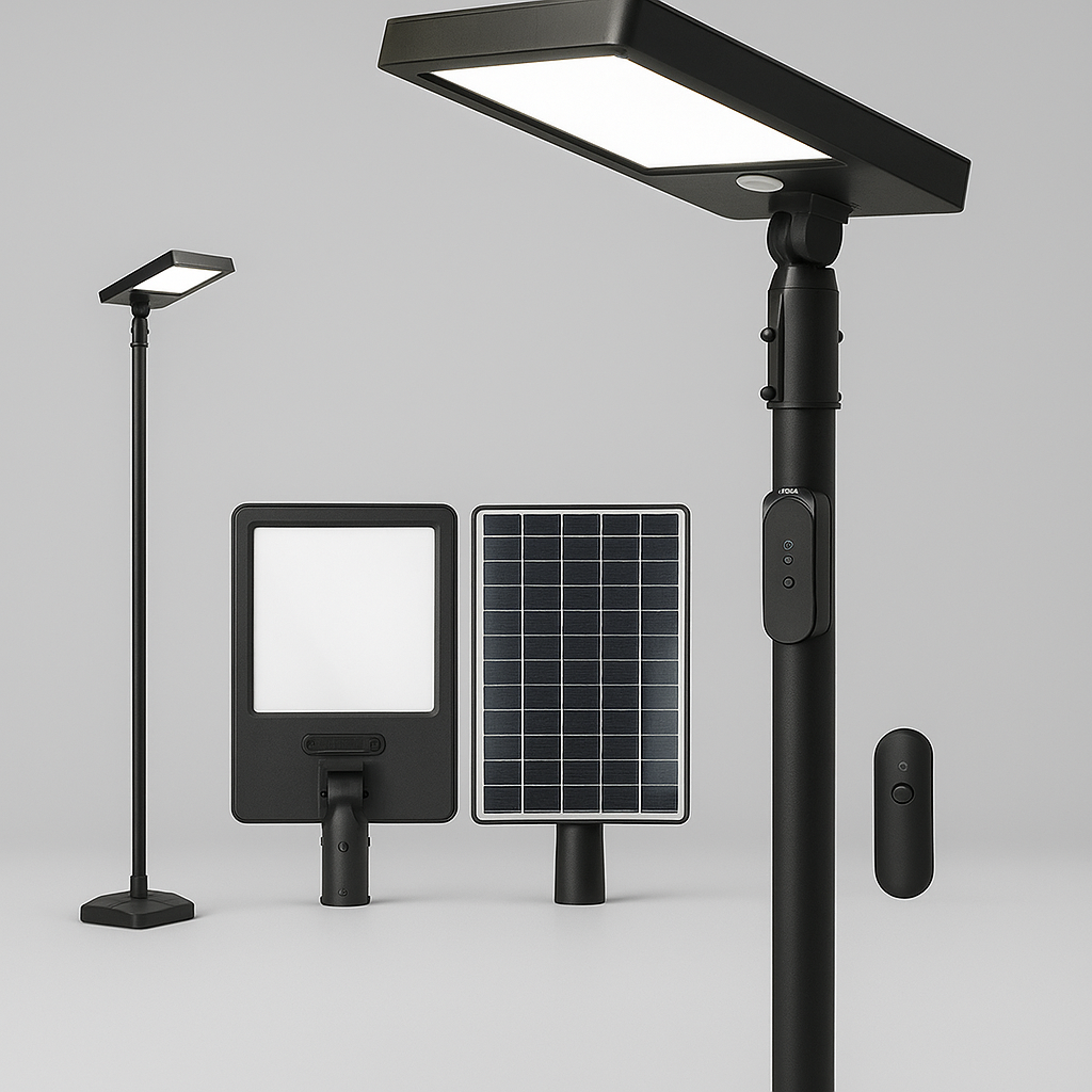 Il modello ZQ-TG01-SS240W è un lampione solare stradale professionale progettato per garantire efficienza luminosa, autonomia energetica e durata nel tempo. Grazie al pannello solare integrato da 25W / 5V e alla batteria al litio da 3.2V 24Ah, assicura un’illuminazione costante e affidabile fino a 14 ore consecutive con un tempo di ricarica medio di 4–6 ore. questo faro solare comprende anche un telecomando con custodia IP65 e il palo completo di base di appoggio da riempire con l'acqua.