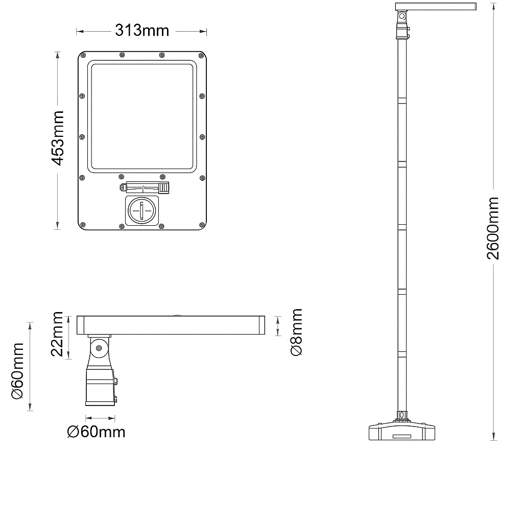 Il sistema di illuminazione è composto da LED SMD5730 ad alta efficienza, per un flusso luminoso complessivo di 2900 lumen e un ampio fascio di emissione di 120°. Il lampione permette di regolare la temperatura di colore tra 3000K (calda), 4000K (neutra) e 6500K (fredda), adattandosi a ogni esigenza ambientale.