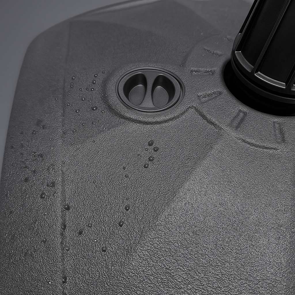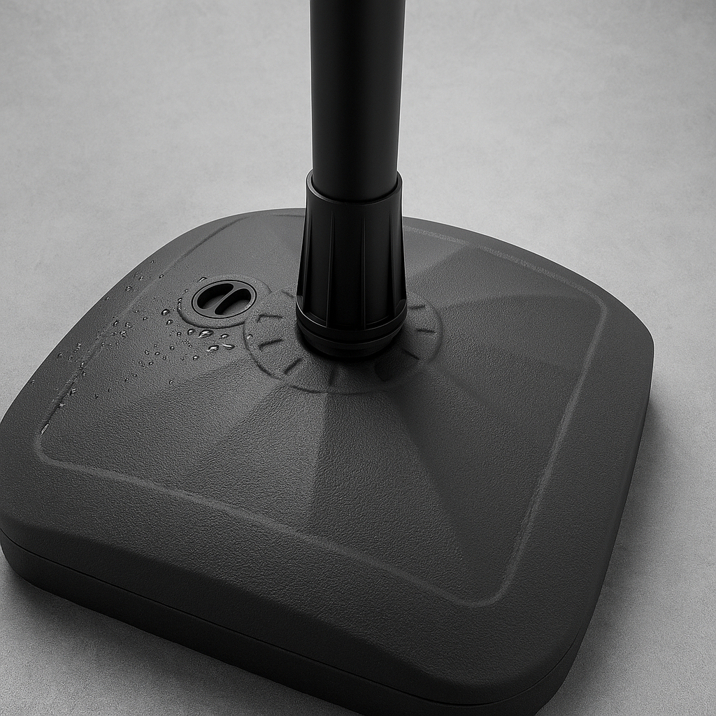 1 base di appoggio del palo con riempimento d'acqua per dare il corretto peso.
