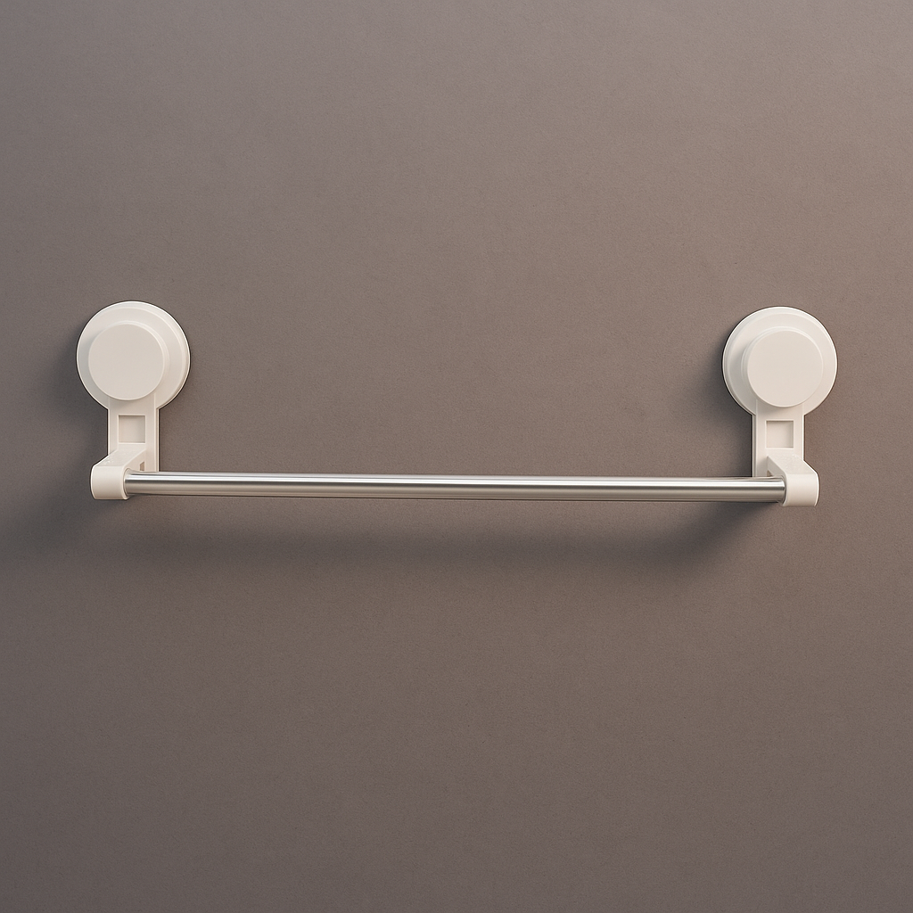 Porta asciugamani con barra singola da 53 cm, fissaggio a ventosa senza trapano. Pratico e resistente, ideale per bagno e cucina.
