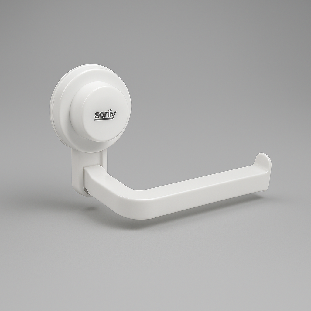 Porta rotolo con fissaggio a ventosa, stabile e pratico, ideale per il bagno senza necessità di fori o trapano. Si applica facilmente su superfici lisce e garantisce un supporto sicuro per la carta igienica.