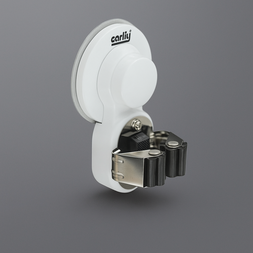 Porta scopa con fissaggio a ventosa, pratico e resistente. Ideale per organizzare scope, mop e altri attrezzi per la pulizia senza forare le pareti.