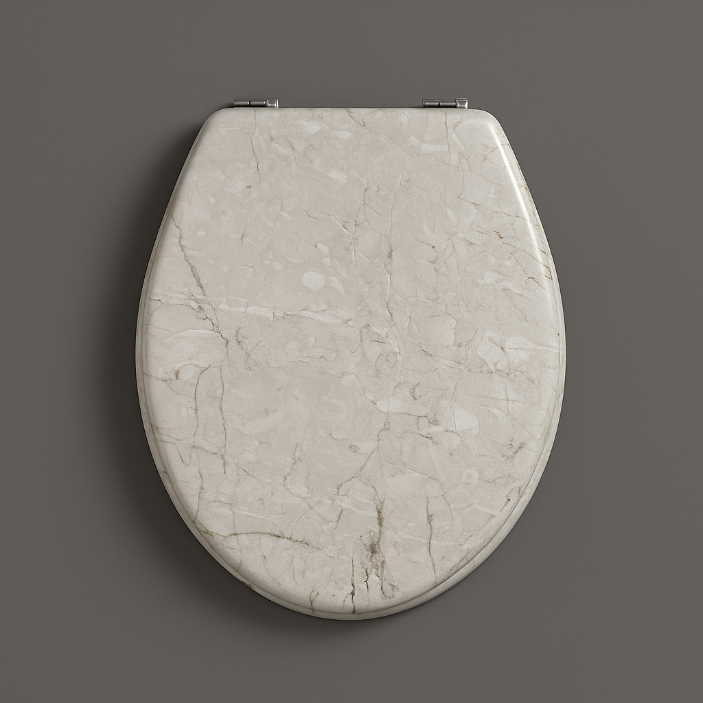 Copri water universale 18 pollici con raffinata finitura effetto marmo. Realizzato in MDF di alta qualità, è solido e resistente, con cerniere cromate regolabili che lo rendono compatibile con la maggior parte dei WC standard. La decorazione effetto marmo porta un tocco di eleganza e stile contemporaneo in bagno.