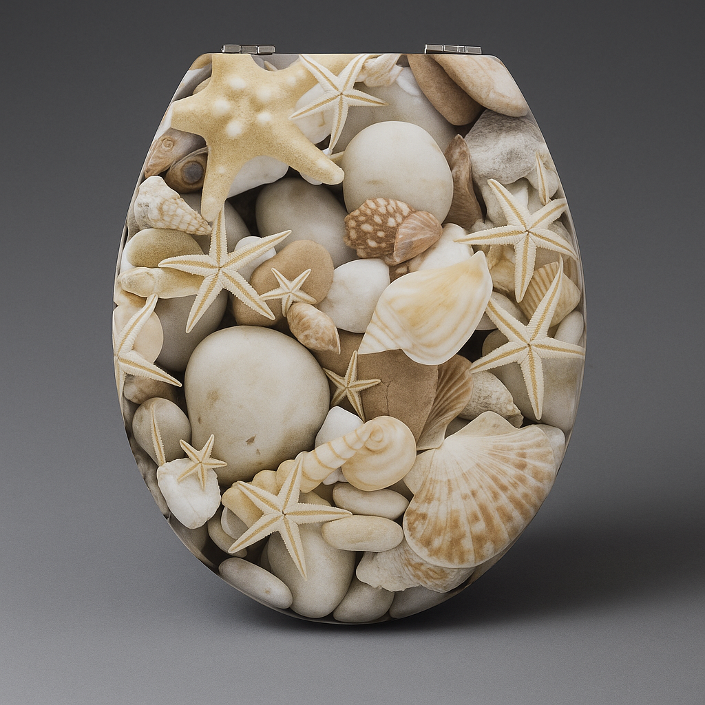 Copri water universale da 18 pollici con fantasia marina di conchiglie e stelle marine. Un accessorio elegante e funzionale che dona al bagno un tocco originale e naturale. Realizzato in materiale resistente, è facile da installare e compatibile con la maggior parte dei WC standard.