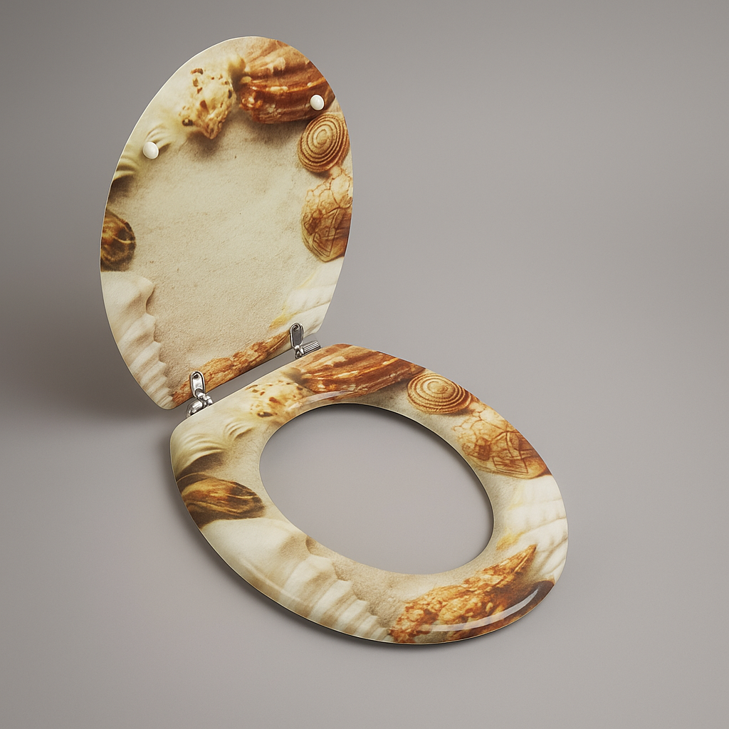 Copri water universale decorato con fantasia marina di conchiglie. Un accessorio funzionale e allo stesso tempo elegante, perfetto per dare un tocco di originalità al bagno. Realizzato in materiale resistente, si adatta facilmente alla maggior parte dei WC standard ed è dotato di cerniere regolabili.