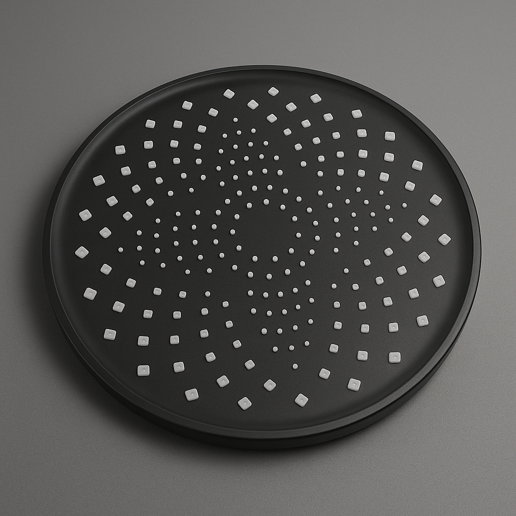 Il soffione doccia tondo nero da 22.5 cm unisce stile moderno e funzionalità avanzata. Grazie al suo ampio diametro e agli ugelli anticalcare distribuiti in modo uniforme, garantisce un getto ampio ed equilibrato, trasformando la doccia in un momento di puro relax.