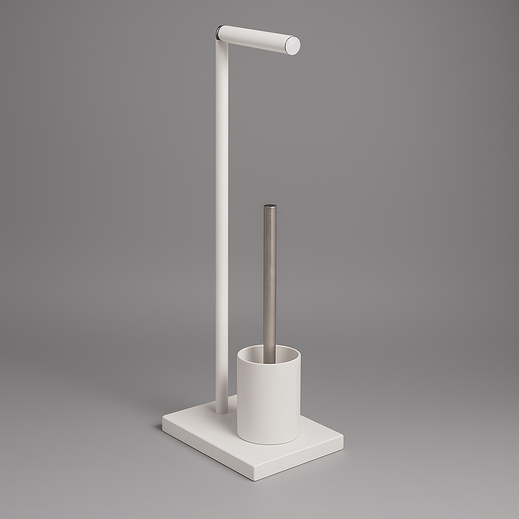 La piantana porta rotolo e porta scopino wc modello 87746 è un accessorio elegante e funzionale, ideale per completare l’arredo del bagno con un tocco di stile moderno e pulito. Realizzata in acciaio verniciato bianco opaco, unisce praticità e design, offrendo in un unico elemento sia il porta rotolo che il porta scopino wc.