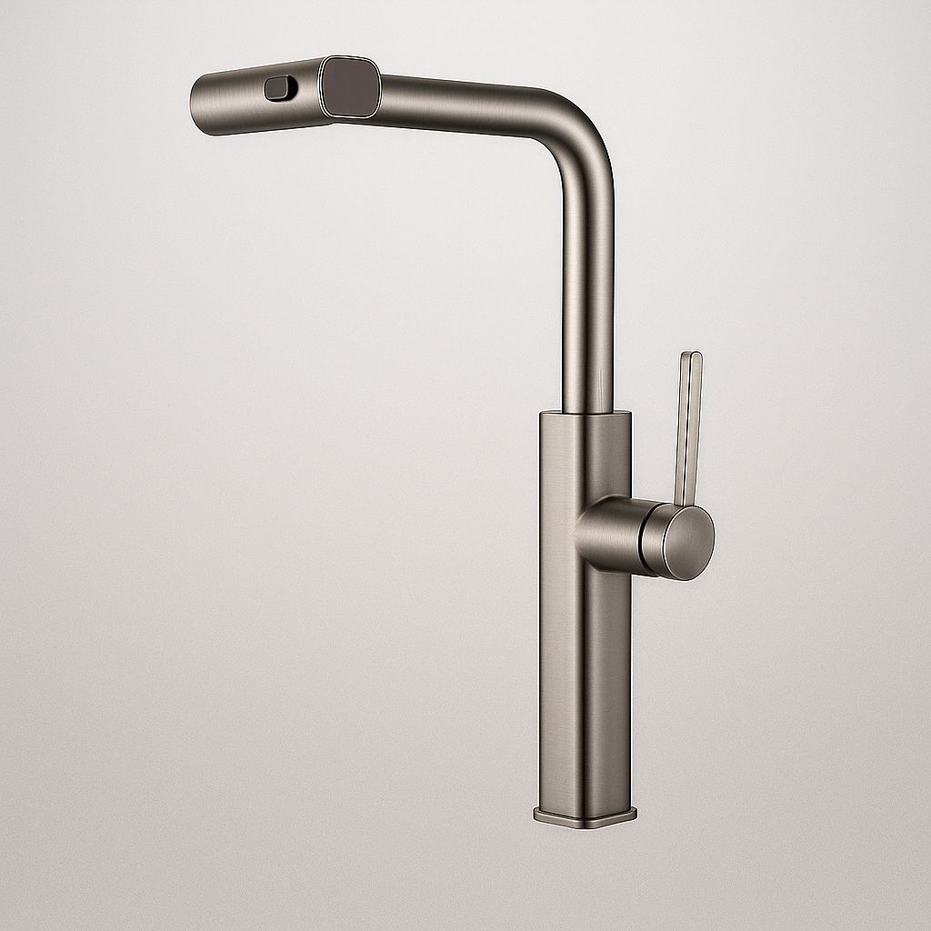 Il miscelatore per cucina grigio con sensore touch è la scelta ideale per chi desidera tecnologia e design contemporaneo in cucina. Il sistema touch consente di attivare e fermare il flusso d’acqua con un semplice tocco, garantendo praticità e igiene. La canna alta girevole rende il miscelatore versatile e comodo per ogni tipo di lavello, mentre la finitura grigio satinato dona un look elegante e resistente. È dotato di testa a due fasi per un controllo ottimale, aeratore anticalcare e tecnologia per il risparmio idrico.