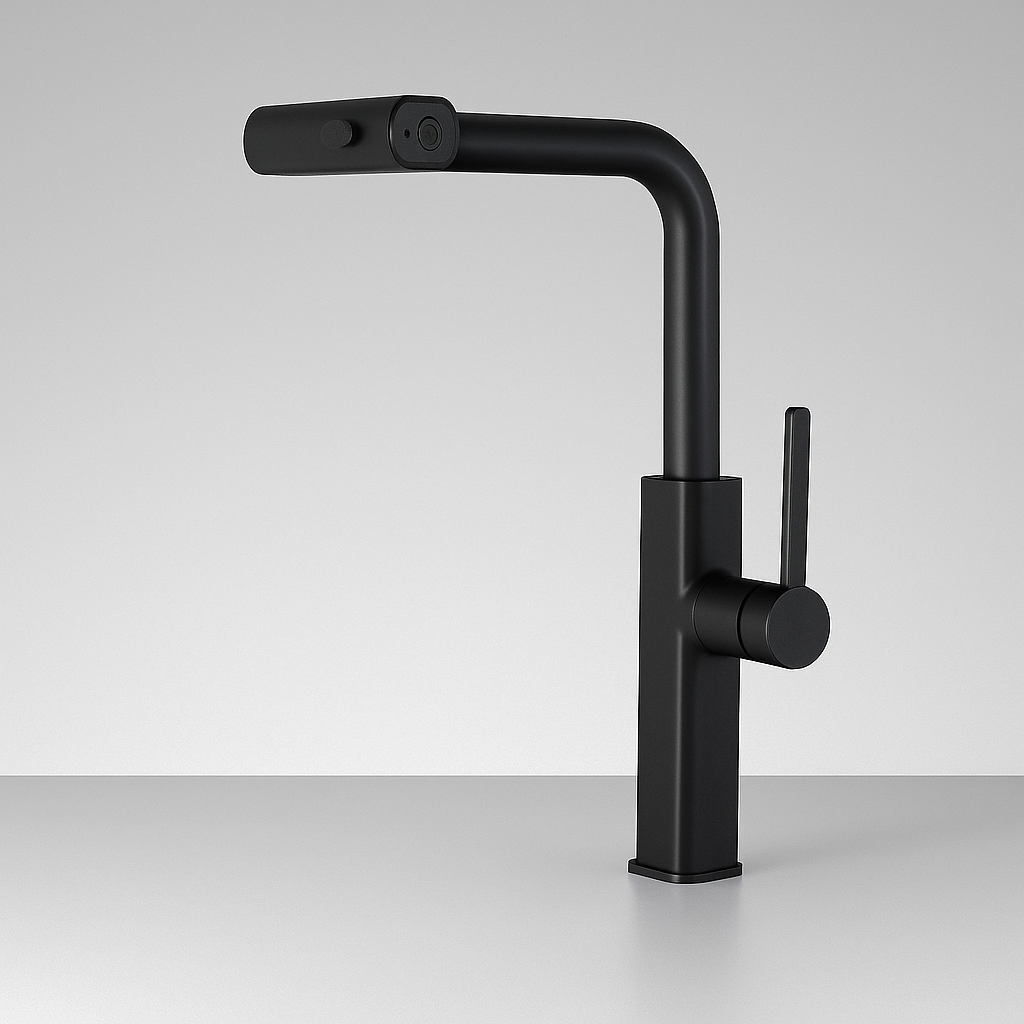 Il miscelatore per cucina nero con sensore touch combina eleganza e tecnologia avanzata, perfetto per cucine moderne. Con il comando a sfioro puoi aprire e chiudere l’acqua con un semplice tocco, migliorando praticità e igiene. La canna alta girevole garantisce ampia libertà di movimento ed è ideale anche per lavelli doppi. La finitura nera opaca conferisce un tocco di stile contemporaneo, mentre la testa a due fasi assicura un controllo preciso del flusso d’acqua. Dotato di aeratore anticalcare e sistema per il risparmio idrico.