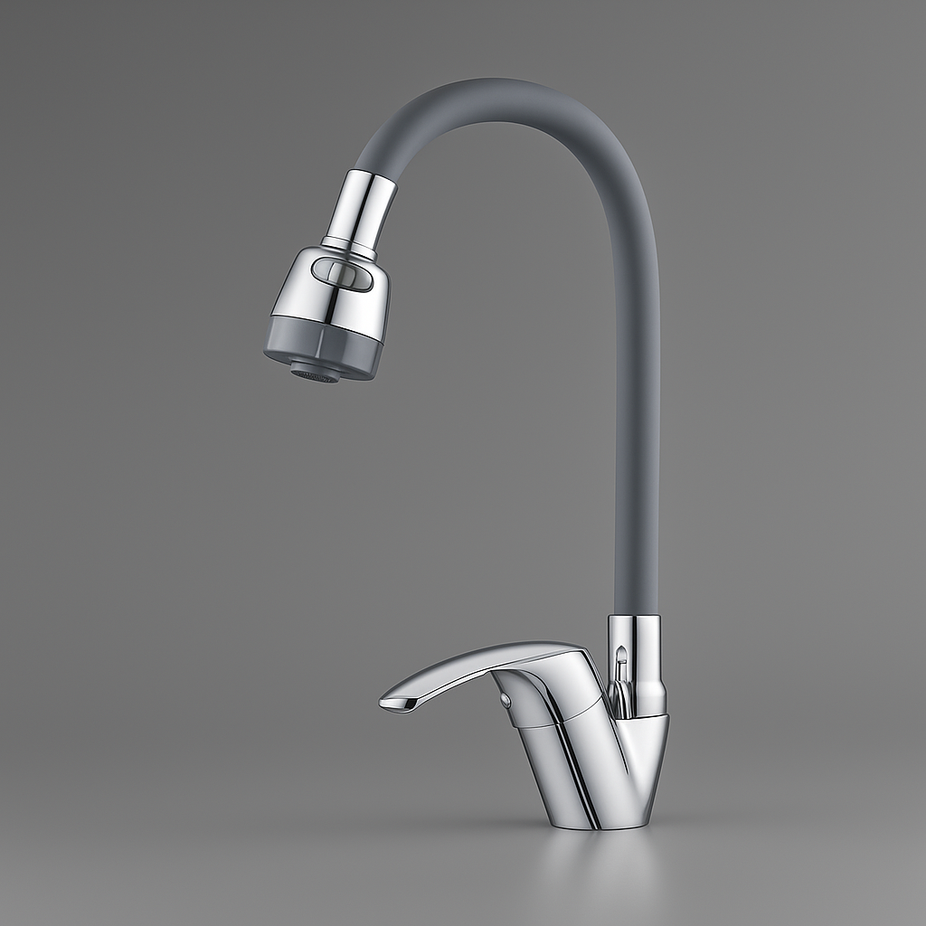 Il miscelatore per cucina con tubo flessibile grigio combina design moderno e funzionalità avanzata. La canna flessibile in silicone grigio permette di orientare liberamente il getto d’acqua, semplificando le attività quotidiane in cucina. La struttura cromata dona resistenza e stile, mentre la testa a due fasi consente di regolare il flusso con precisione. L’aeratore anticalcare garantisce un flusso costante e riduce i depositi di calcare, favorendo il risparmio idrico.