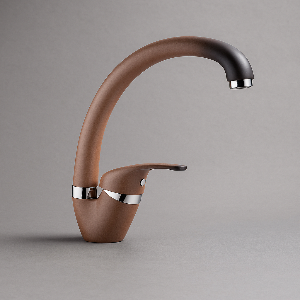 Il miscelatore per cucina Terrafrancia è caratterizzato da un design moderno e finitura color marrone effetto pietra, perfetto per cucine eleganti e contemporanee. Dotato di testa a due fasi, permette un controllo preciso del flusso e della temperatura dell’acqua. La canna alta e girevole assicura la massima praticità nelle attività quotidiane, mentre l’aeratore anticalcare garantisce durata e manutenzione ridotta. Inoltre, favorisce un concreto risparmio idrico senza compromettere le prestazioni.