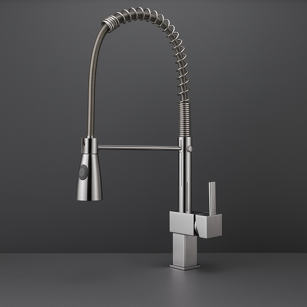 Il miscelatore per cucina professionale con molla corpo squadrato è pensato per chi cerca funzionalità avanzata e un design moderno. La struttura ad arco flessibile con molla in acciaio garantisce ampia libertà di movimento, ideale per lavelli ampi e cucine professionali. Il corpo squadrato dona un aspetto contemporaneo e solido, mentre la testa a due fasi e il miscelatore girevole permettono un controllo ottimale. L’aeratore anticalcare riduce i depositi e prolunga la durata del prodotto, mentre il sistema di risparmio idrico assicura consumi contenuti senza rinunciare alla potenza.