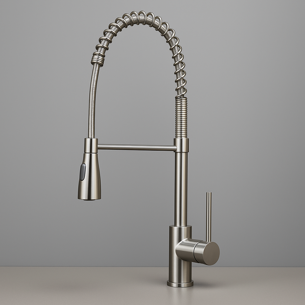 Il miscelatore per cucina professionale con molla è pensato per garantire massima praticità e prestazioni elevate in cucina. La struttura alta con molla flessibile consente di orientare il getto d’acqua in qualsiasi direzione, ideale per lavelli ampi e per l’uso intensivo. Realizzato con finitura cromata resistente, è dotato di testa a due fasi e miscelatore girevole che assicurano un controllo preciso del flusso d’acqua. L’aeratore anticalcare riduce i depositi e garantisce una lunga durata, mentre il sistema di risparmio idrico contribuisce a ottimizzare i consumi.