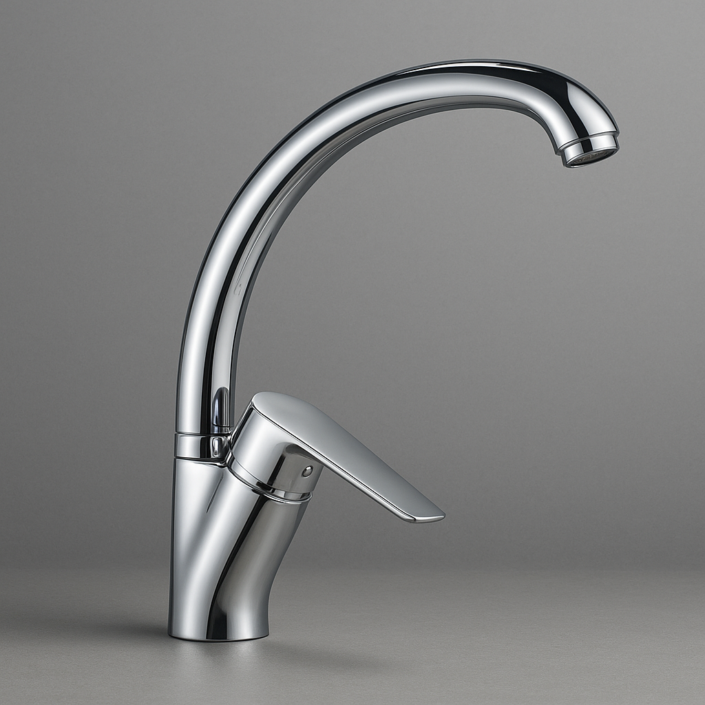 Il miscelatore per cucina serie Cube è realizzato in ottone cromato, con un design elegante e funzionale. Dotato di bocca alta e orientabile, garantisce praticità e comfort nell’uso quotidiano, unendo estetica moderna a qualità costruttiva.