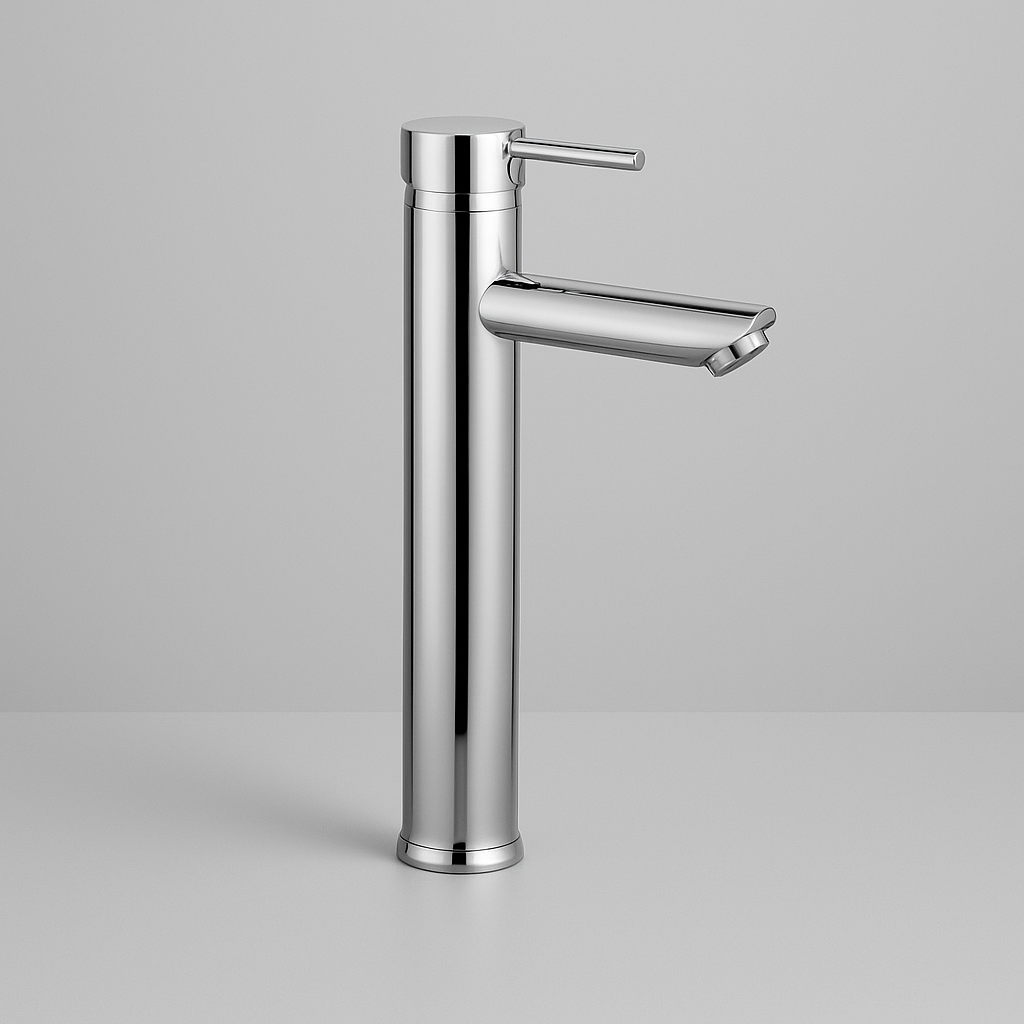 Il miscelatore per lavabo alto serie Ray in finitura cromata unisce design moderno e funzionalità. Con il suo corpo slanciato, è perfetto per lavabi da appoggio, garantendo comfort d’uso e lunga durata.