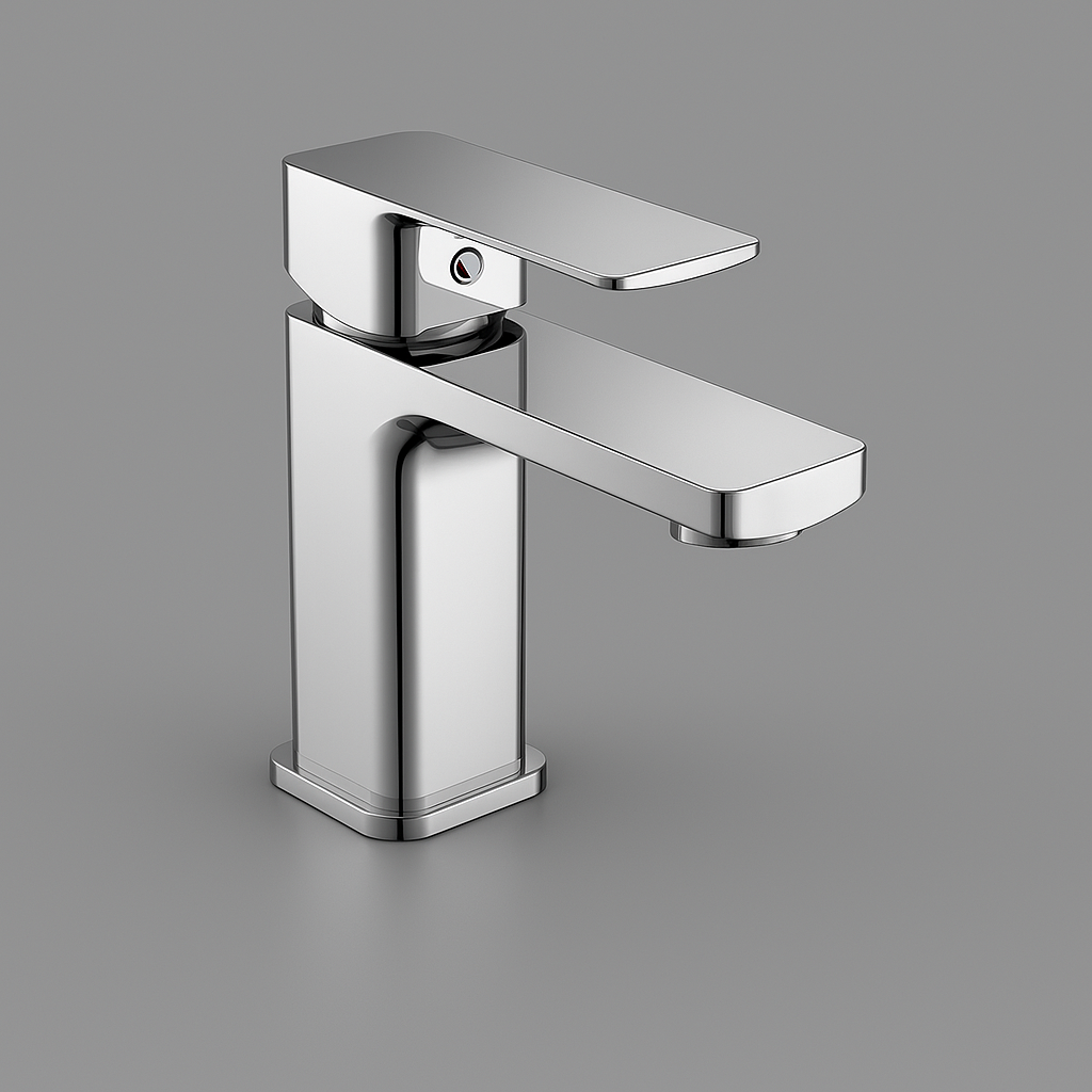 Il miscelatore per lavabo serie Shape è realizzato in ottone cromato con design moderno e linee squadrate, perfetto per ambienti bagno contemporanei. Dotato di aeratore anticalcare e sistema di risparmio idrico, garantisce funzionalità e durata.