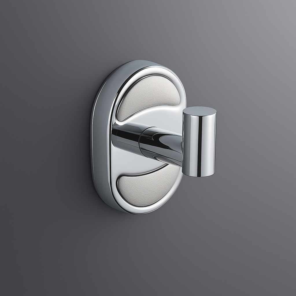 Appendino cromato compatto e resistente, ideale per bagno, cucina o camera. Si applica facilmente al muro o a superfici lisce, perfetto per appendere asciugamani, accappatoi, utensili e accessori vari.