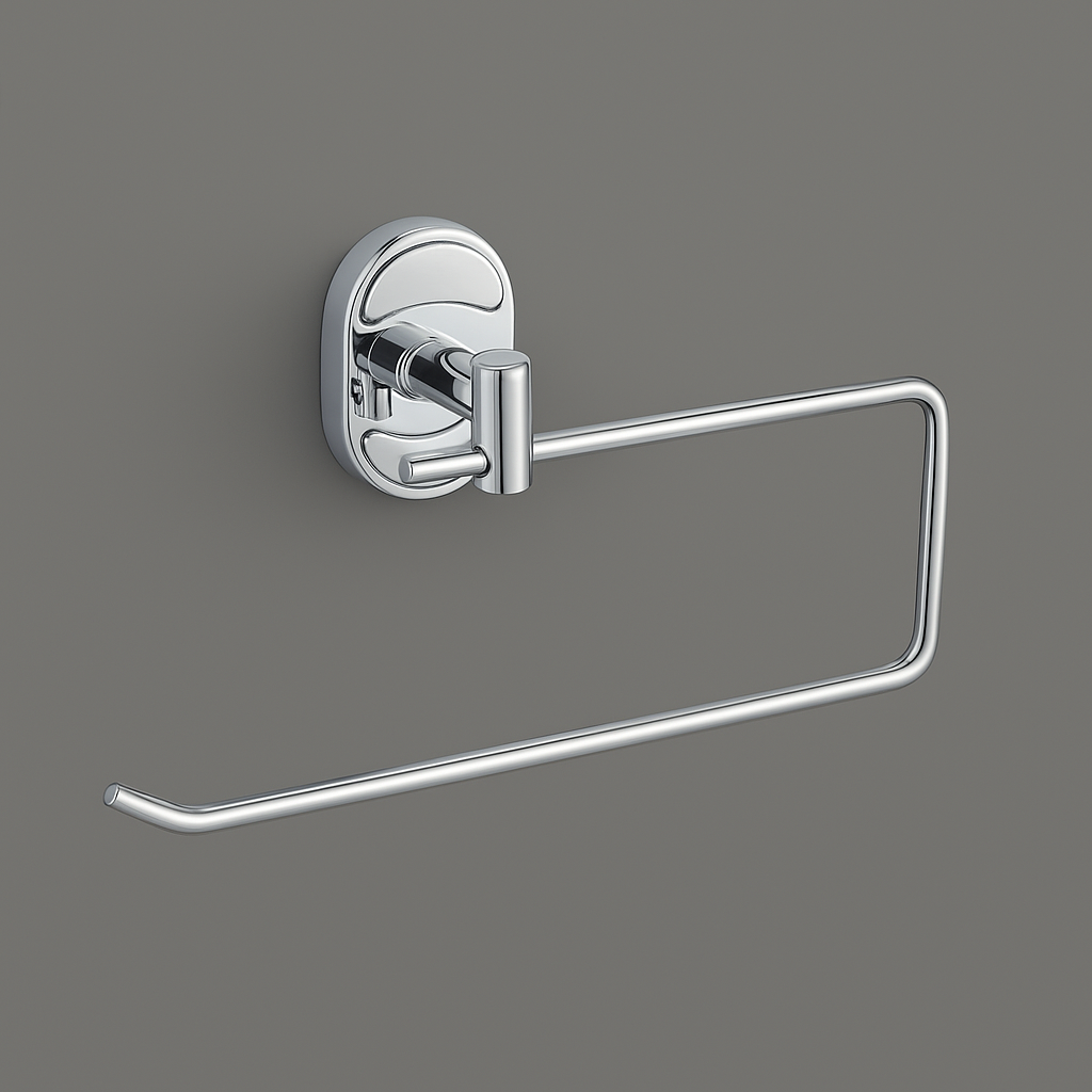 Porta asciugamano da parete in metallo cromato, dal design semplice e funzionale. Ideale per appendere asciugamani di diverse dimensioni, mantiene ordine e praticità in bagno. Linee eleganti che si adattano facilmente a qualsiasi arredamento.