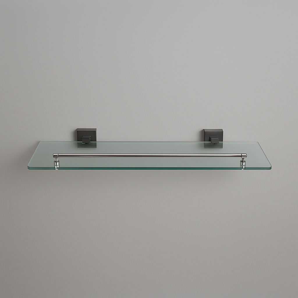 Mensola in vetro temperato con supporti quadrati cromati. Ideale per organizzare e valorizzare lo spazio del bagno, consente di riporre saponi, bicchieri o accessori mantenendo ordine e praticità. Grazie al design moderno con supporti quadrati, si adatta perfettamente a qualsiasi stile d’arredo. Installazione semplice con doppio fissaggio: biadesivo 3M incluso o viti e tasselli.