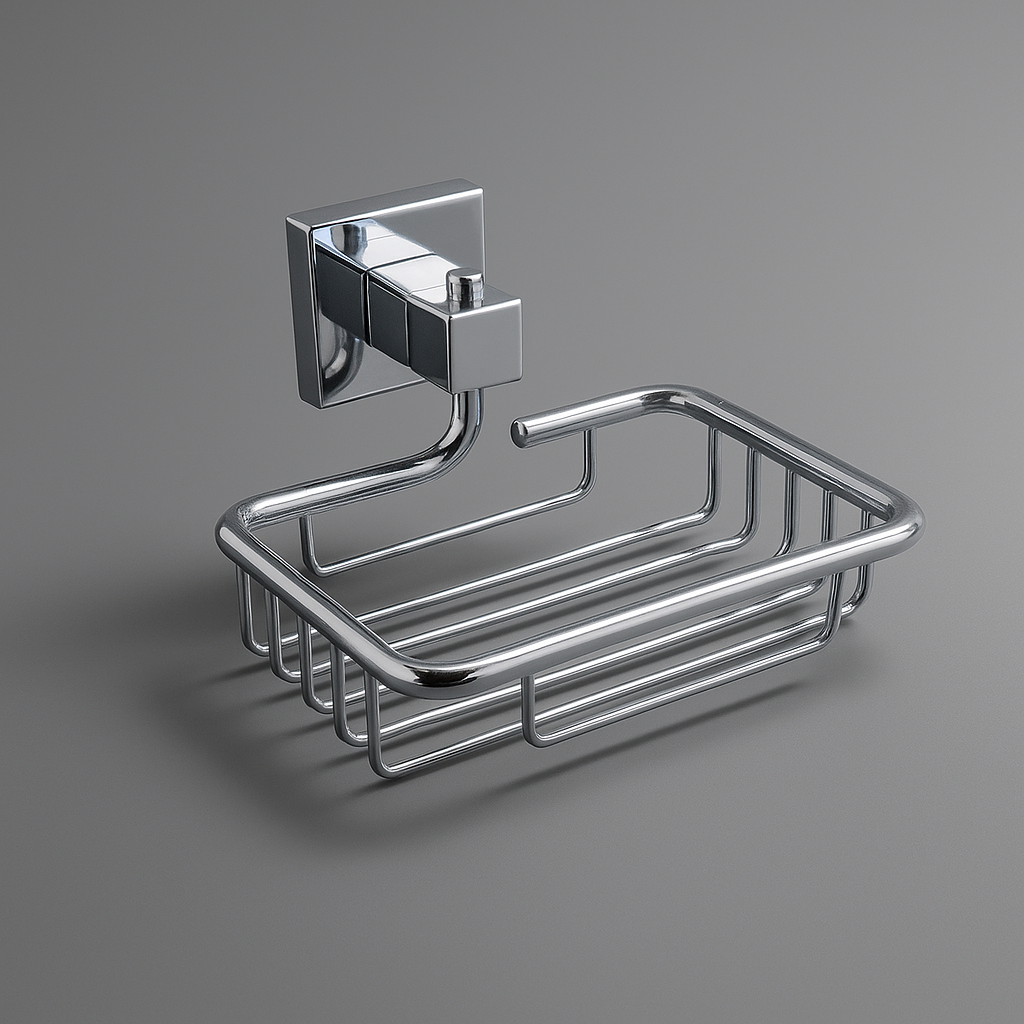 Porta sapone da parete in metallo cromato con design quadrato moderno. La griglia in metallo garantisce una perfetta aerazione del sapone, evitando ristagni d’acqua e mantenendo il bagno ordinato ed elegante. Installazione semplice grazie al doppio fissaggio: con biadesivo 3M oppure con viti e tasselli inclusi.