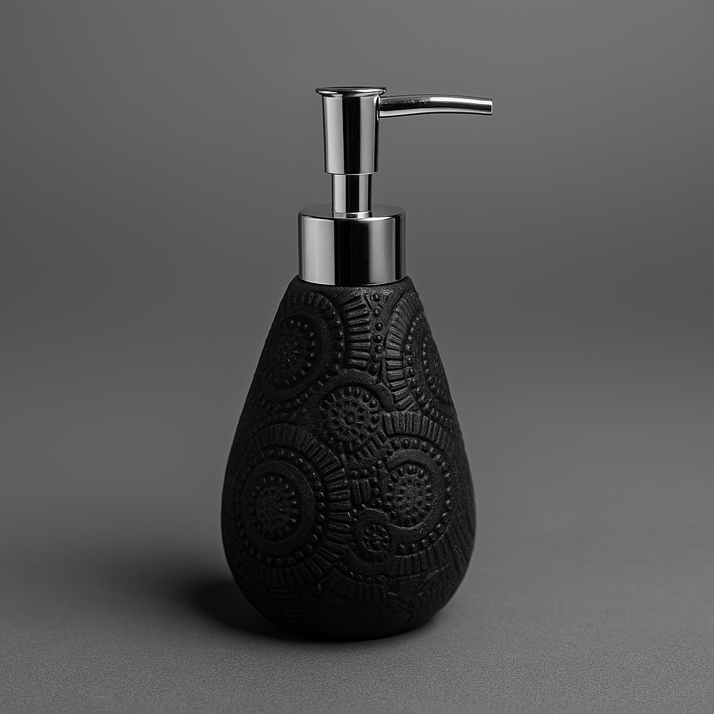 Il dispenser per sapone serie black è realizzato in elegante ceramica nera con finitura decorata a rilievo. Il design raffinato e moderno si abbina facilmente a qualsiasi arredo bagno, garantendo praticità e stile. Il dosatore in acciaio cromato permette un'erogazione fluida e precisa del sapone liquido, rendendo questo accessorio indispensabile per un bagno ordinato e funzionale.