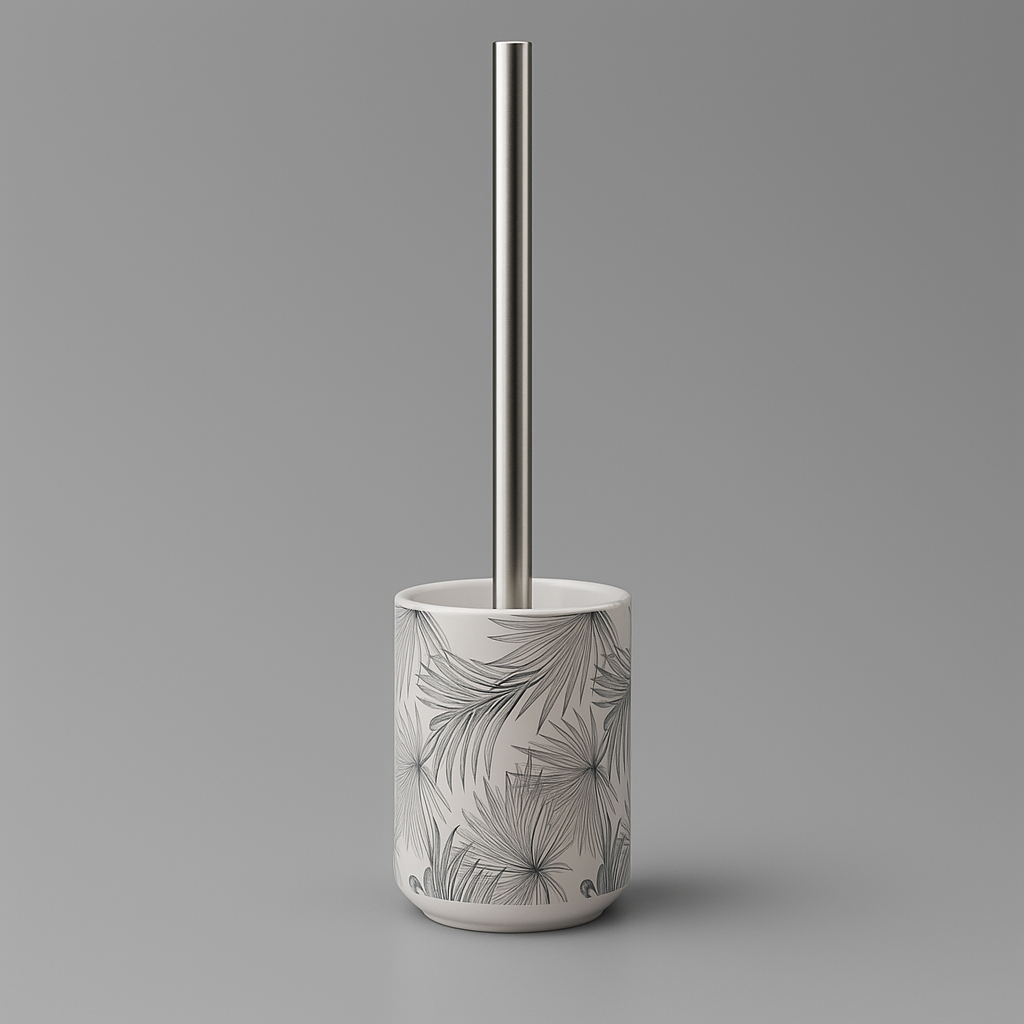 Il porta scopino wc in ceramica con decoro foglie è un accessorio indispensabile per mantenere il bagno pulito ed elegante. Dotato di contenitore stabile e manico in acciaio inox, unisce resistenza e design moderno.