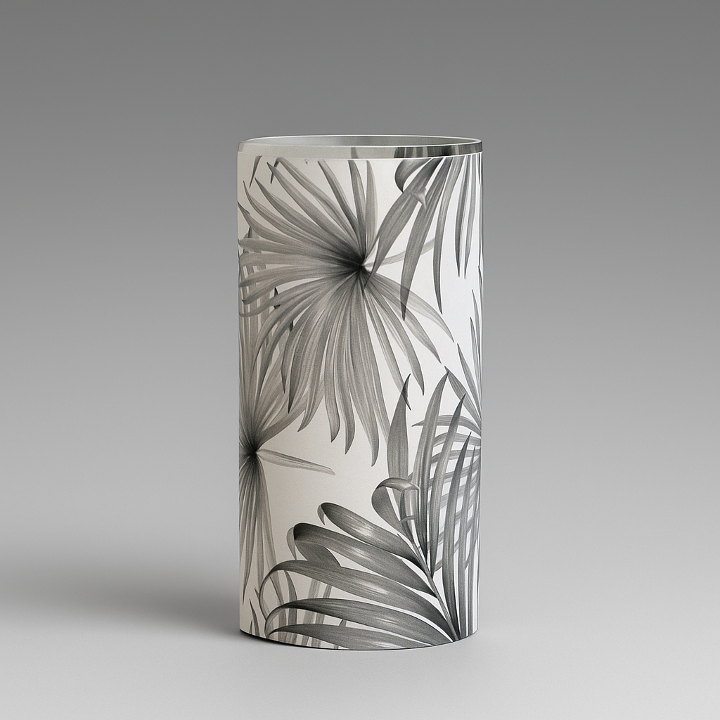 - Colore/Decoro: stampa foglie in tonalità grigio/nero