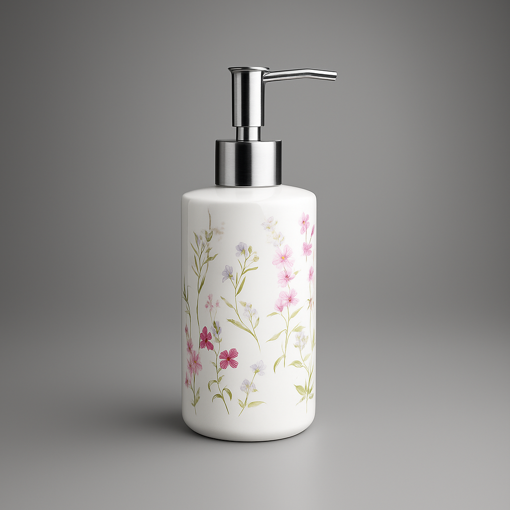 Il dispenser sapone serie fiore è un elegante accessorio da bagno in ceramica, arricchito da decorazioni floreali che donano un tocco di freschezza e raffinatezza. Dotato di dosatore cromato, permette di erogare la giusta quantità di sapone liquido con praticità, unendo funzionalità e design.
