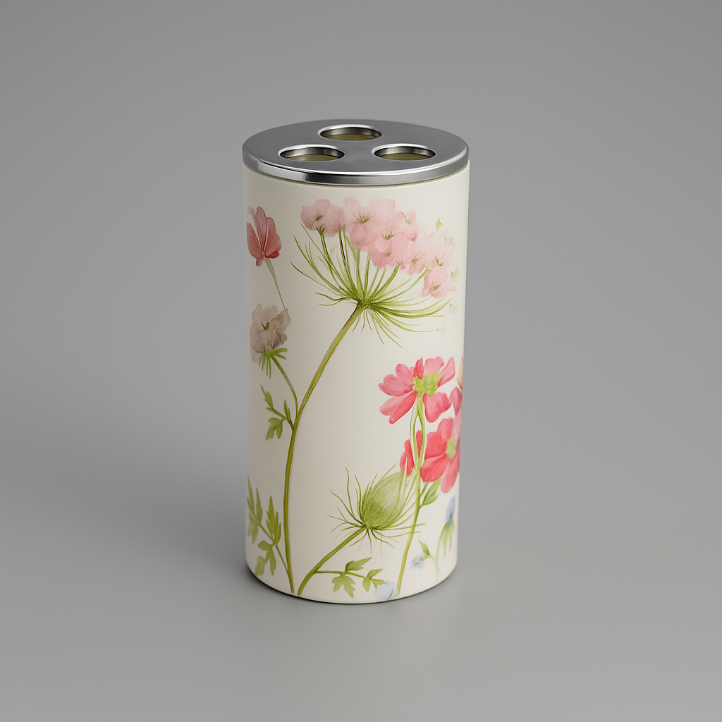 Il porta spazzolino serie fiore è un accessorio elegante e funzionale per il bagno, realizzato in resistente ceramica con una raffinata decorazione floreale. Grazie ai fori multipli sul coperchio, permette di riporre e organizzare in modo igienico spazzolini e accessori da bagno, aggiungendo al contempo un tocco di stile e colore.