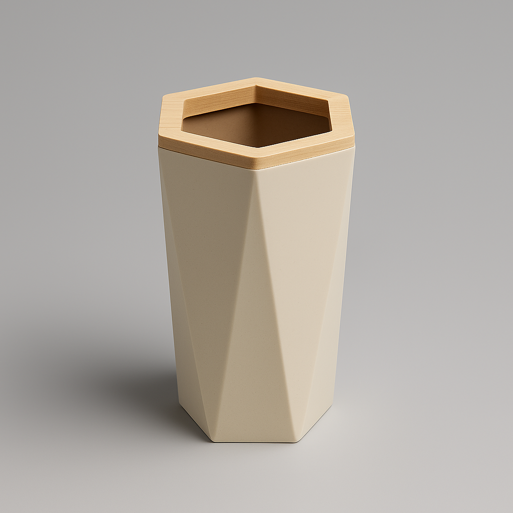 Porta spazzolini della serie adriatica, dal design geometrico elegante con base esagonale. Realizzato in ABS resistente con dettagli in bambù naturale, unisce stile e funzionalità. Ideale per mantenere gli spazzolini in ordine aggiungendo un tocco moderno al bagno.