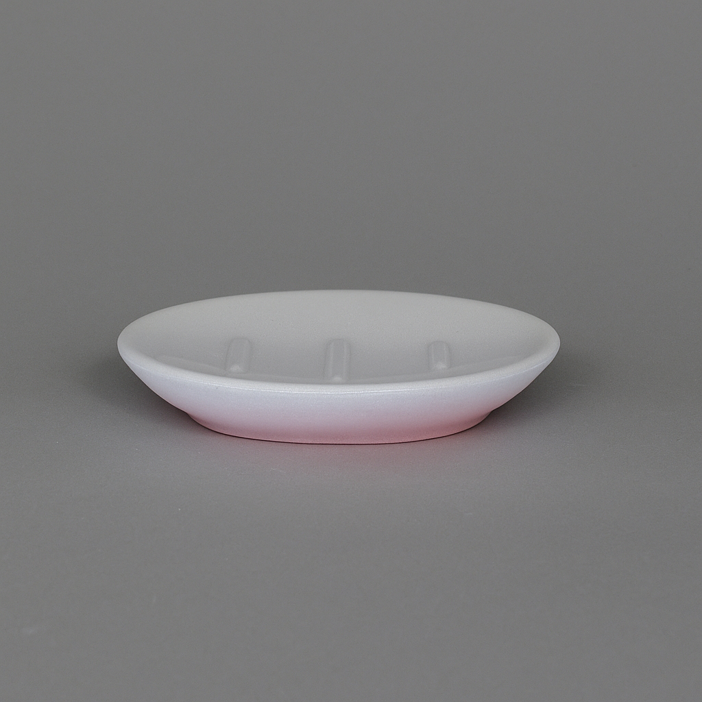 Il porta sapone in ceramica con finitura sfumata rosa è ideale per appoggiare saponette solide, donando eleganza e armonia al bagno.