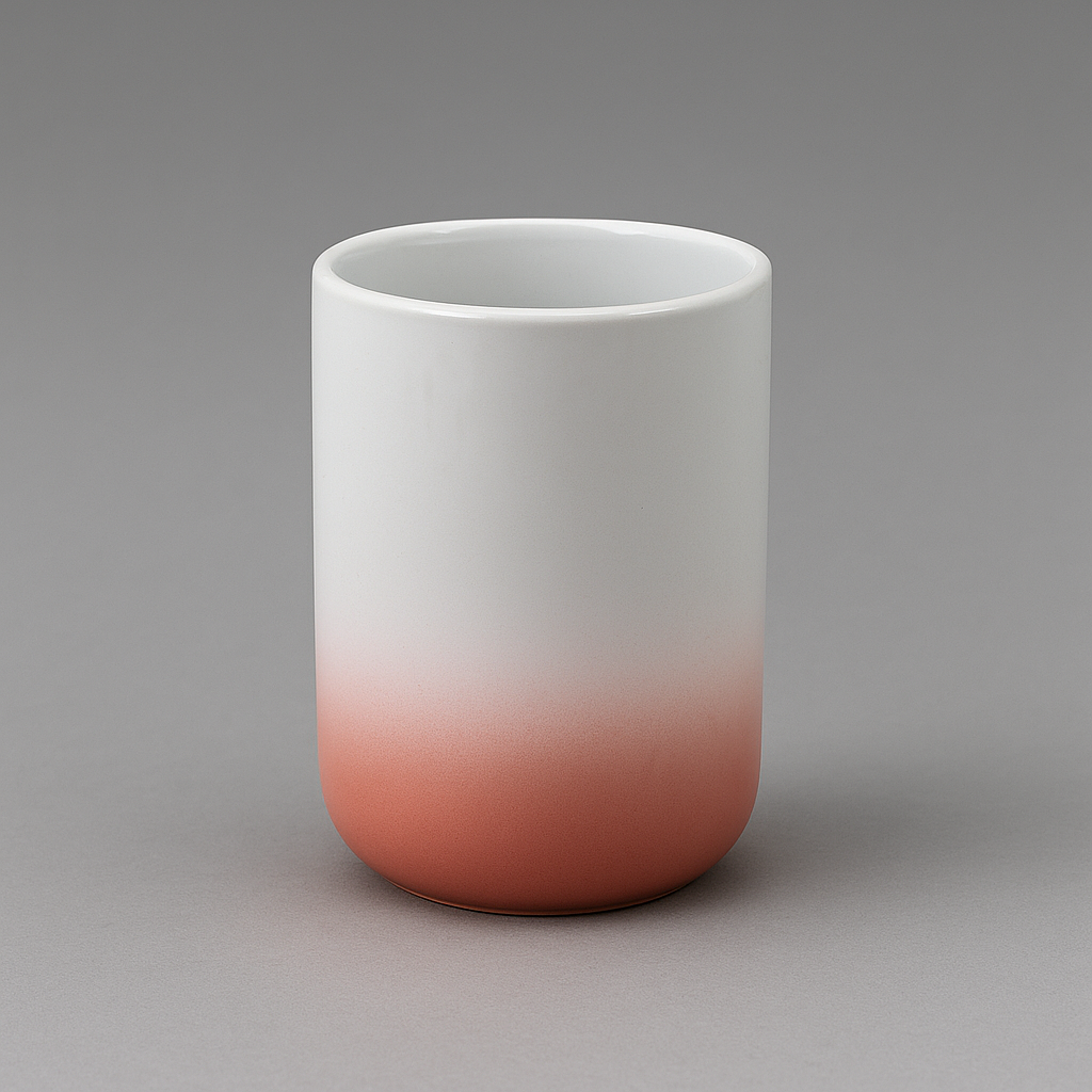 Il porta spazzolini in ceramica con finitura bianco sfumato rosa è l’accessorio perfetto per mantenere in ordine gli spazzolini con stile e delicatezza.