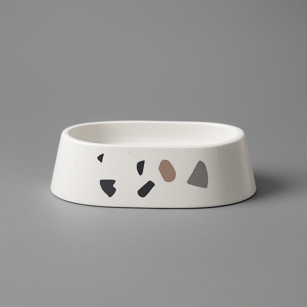 Porta sapone della linea isola, realizzato in resina effetto terrazzo con frammenti colorati su base bianca. Elegante e funzionale, mantiene il sapone solido asciutto e in ordine, aggiungendo un tocco moderno al bagno.