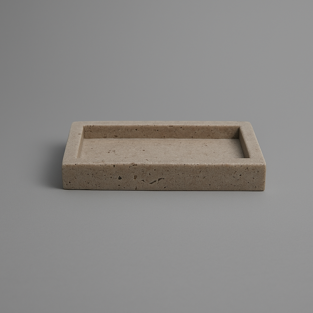 Porta sapone della linea pietra, dal design elegante e naturale che ricorda la solidità della roccia. Realizzato in resina effetto pietra, è ideale per mantenere il sapone in ordine ed evitare residui sul lavandino. Un accessorio funzionale e decorativo che dona stile al bagno.