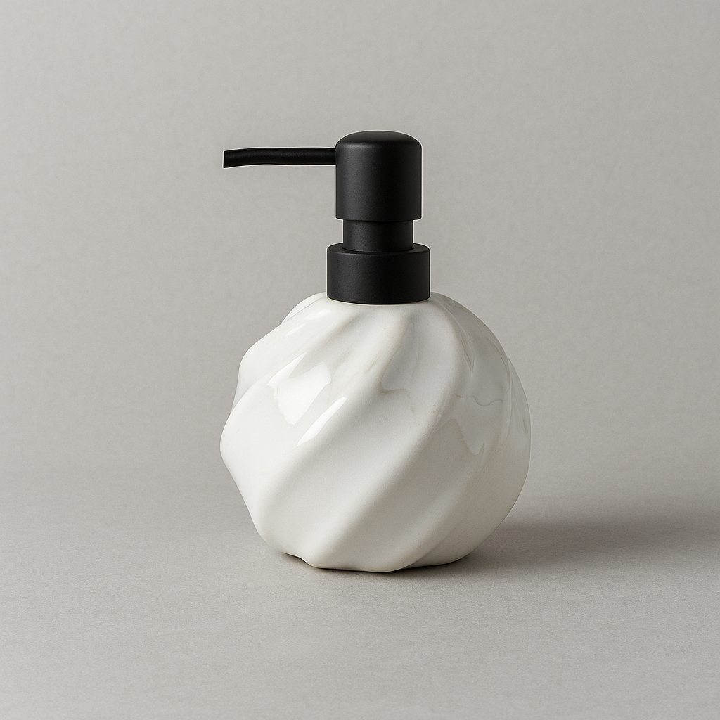 dispenser sapone serie polo in ceramica bianca con pompa nera