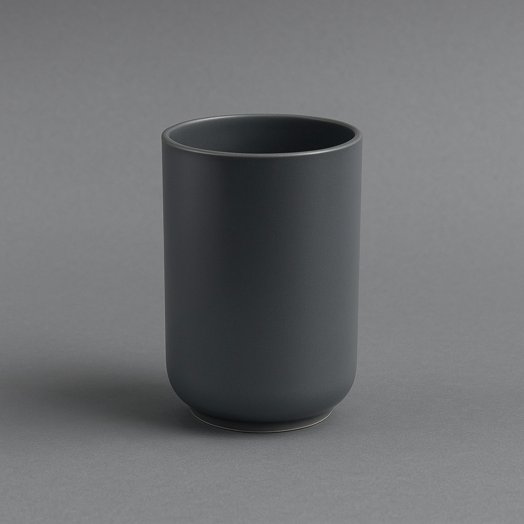 Bicchiere multiuso della serie saronno, dal design minimal e raffinato. Realizzato in plastica resistente con finitura grigio elegante, è perfetto come porta spazzolini o come contenitore versatile per il bagno. Ideale da coordinare con gli altri accessori della stessa linea.